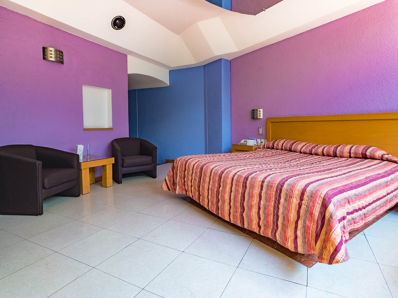 Contamos con amplias habitaciones, que para tu confort y comodidad cuentan con excelentes amenidades como Wi-Fi, Televisión de pantalla plana, Programación por cable, caja fuerte y baños muy amplios con doble lavabo. Los tipos de habitación que tenemos son: